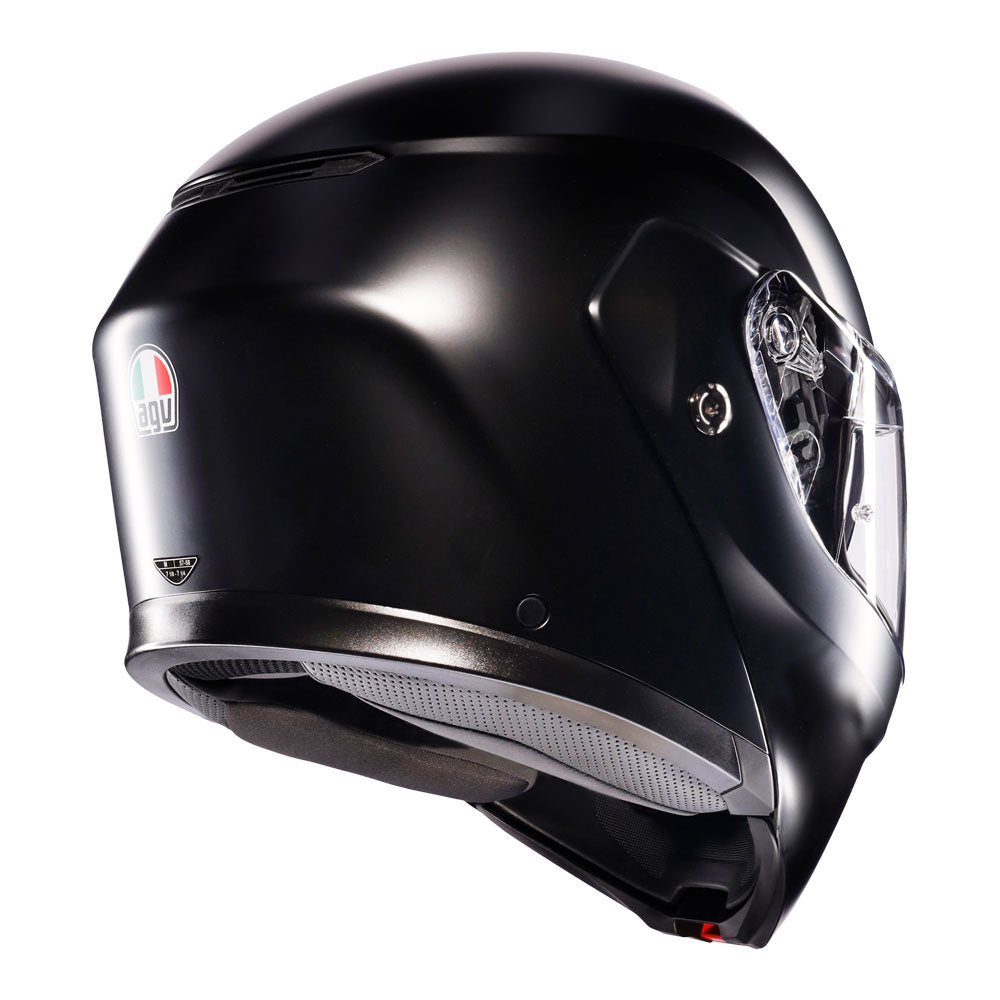 The soft Ritmo and Shalimar fabric interiors, with personalized fit system, ensure that moisture and sweat are absorbed immediately. Waterproof synthetic leather piping keeps water out of the helmet interior on the rainiest of days. The AGV Micro-opening system allows you to keep the visor open for airflow while keeping it securely attached to the chinguard.