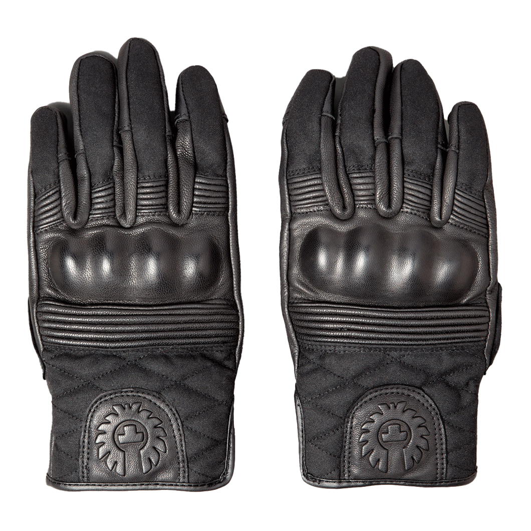 The Belstaff Hampstead combines goatskin leather and technical waxed cotton to create an excellent protective motorcycle glove. Belstaff Phoenix logo on cuff.