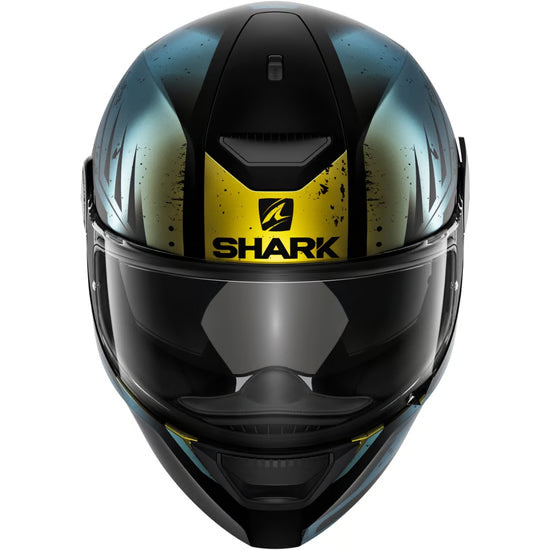 Shark D-Skwal Dharkov Helmet Matte Black / Green Glitter. Full face helmet of aggressive design; stands out for affording stability, safety and comfort.
