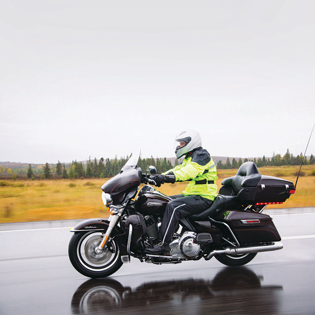 This jacket includes adjustable side buckles and an elastic waist for a secure fit, and two large waterproof outer pockets for convenient storage. The soft tricot-lined collar with integrated rain hood, elasticized sleeve cuffs with self-fastening straps, and adjustable bottom hem shock cord enhance the overall functionality. Reflective material on the front, back, and sleeves improves visibility at night, ensuring your safety on the road. The jacket also packs into a self-contained pocket for easy storage when not in use. Backed by a 2-year warranty, the Solo Storm Motorcycle Rain Jacket is your reliable companion for all-weather riding.