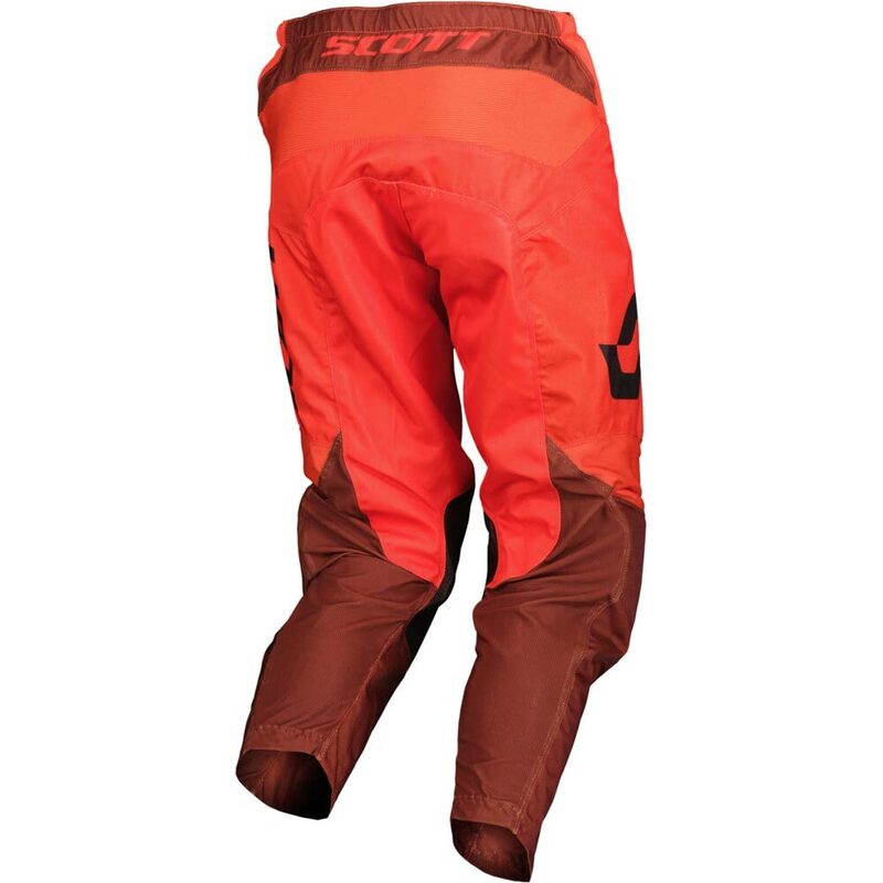 The Scott 350 kids' MX pants combine a durable polyester construction with stretch and ventilation panels. Ergonomically shaped, they offer optimum comfort in the riding position. The upper knee area is made of ribbed spandex for movement, with leather knee panels providing enhanced durability. Mesh lining inside the back gusset is made of stretch Lycra with ultralight TPRs for superior airflow. A micro-adjustable ratchet closure gives secure closure. Matching items are also available.