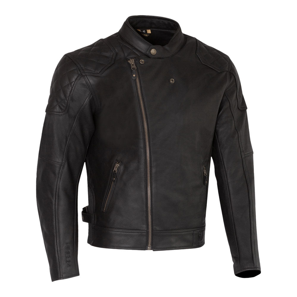 With an asymmetrical front zipper, Chester is a British motorcycle classic. Using a premium cowhide and D3O® four-piece impact protectors, the Chester jacket has thoroughly modern protection in a vintage package. There are three colour options, black, distressed brown and a distressed green for a true signature statement. Each colour comes with antique brass hardware in the Merlin branded snaps, YKK® zippers and metal buckle adjustments. Chester has a supple and luxurious feel, enhanced by the diamond stitched quilt overlays.